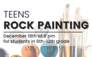 Join us and relax as the semester winds down and paint rocks. Thursday, December 18th at 6 PM Space is limited and registration is required.