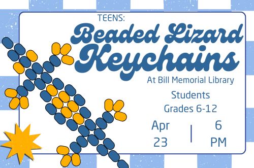 Come use pony beads to make a beaded lizard for your backpack or keys! Thursday, April 23rd at 6 PM This program is free and