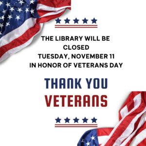 We will be closed for Veterans Day on Tuesday, November 11, but will reopen at 10 AM on Wednesday, November 12th.