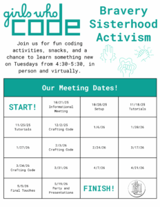 Are you interested in computers? Do you want to learn a new skill? Join us for our weekly Girls Who Code meetings on