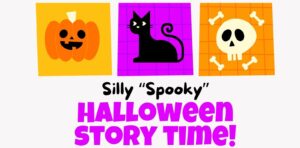 Halloween Story Time on Thursday, October 30 at 10:00 AM. We will share silly “spooky” stories, songs with live music, and a craft. Costumes are